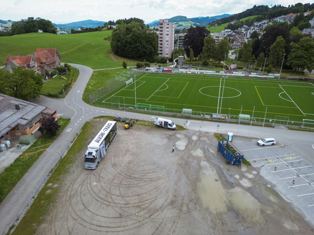 Zwischen den beiden Lieferungen bekommt ein Fussballtrainer aus Herisau Wind von unserer Aktion. Bei ihm wird gerade ein Kunstrasenplatz erneuert. Als wir schlussendlich ein Telefon von ihm erhalten und er die Situation erklärt, wird klar, dass dies der krönende Abschluss werden könnte. Die Spielfläche für ein lizenziertes 11×11 Spielfeld mit einem Total von 6000 Quadratmetern ist uns bereits zugesprochen. Innerhalb von drei Wochen führen wir eine Fundraisingkampagne durch und organisieren die Lastwagen. Als Ende Juni der letzte Lastwagen vom Platz rollt, wissen wir, dass wir einen weiteren Meilenstein erreicht haben. Die Fussballschule wird das lang ersehnte und erbetene Kunstrasenspielfeld in lizenzierter Grösse erhalten.